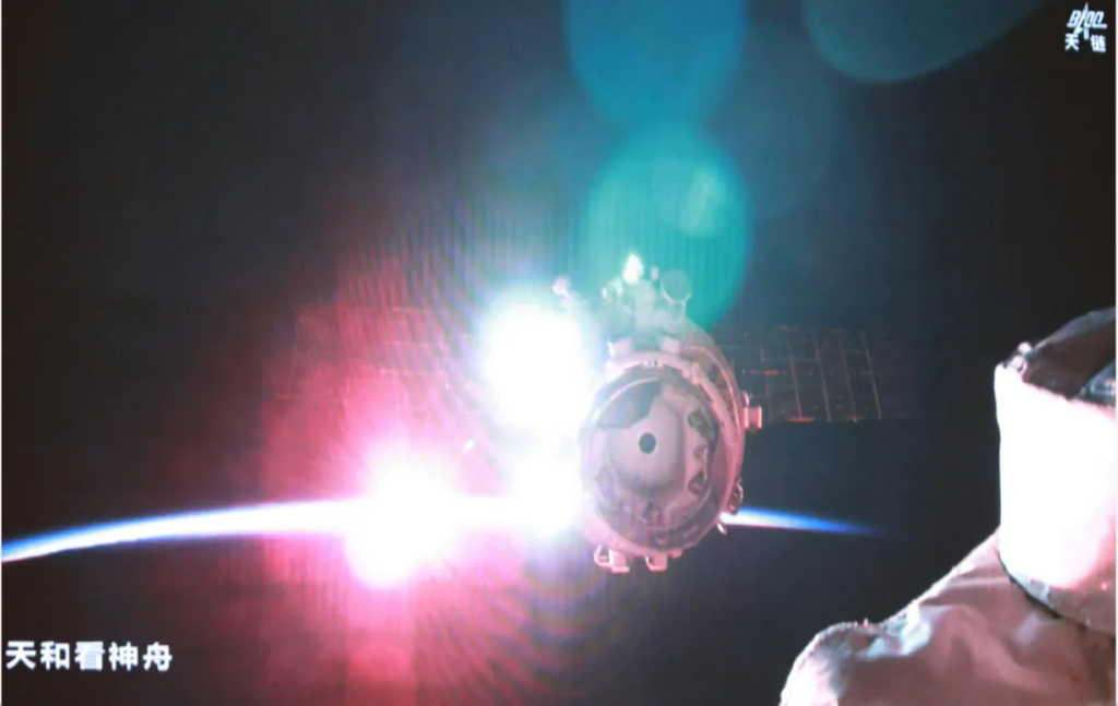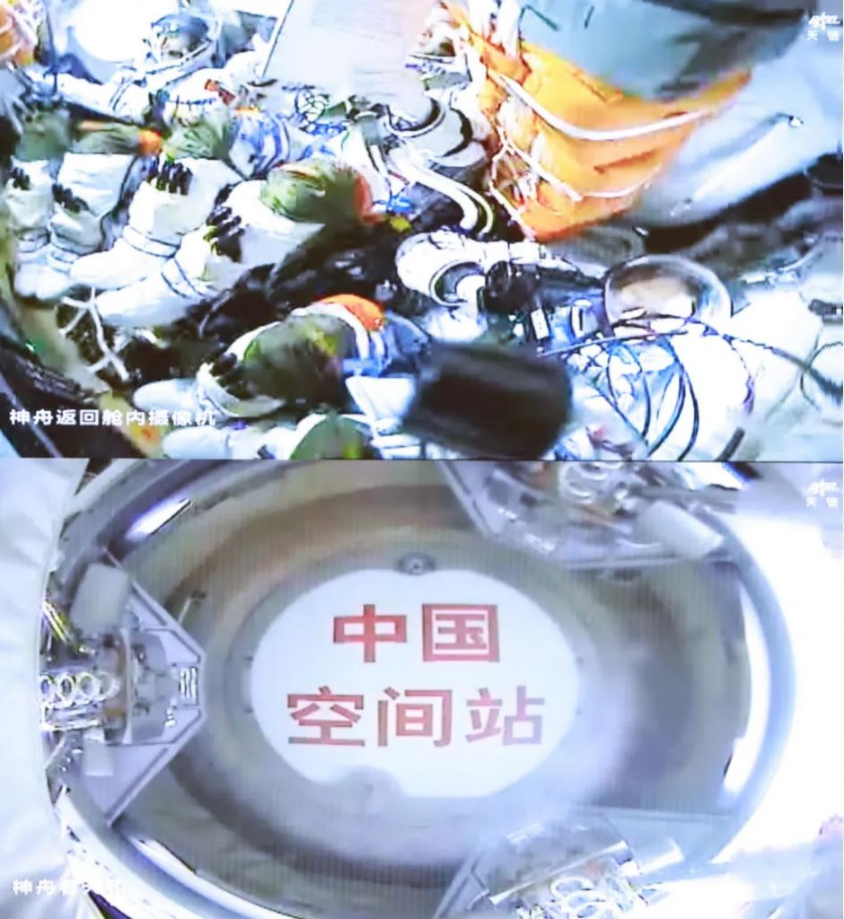 飛船入軌后,于11月1日3時22分,成功對接于空間站天和核心艙前向端口,整個對接過程歷時約3.5小時,創造了神舟飛船與空間站交會對接的最快紀錄。