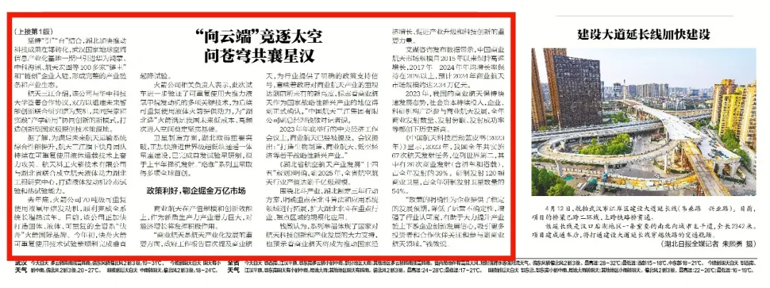 湖北日報:湖北商業航天“箭”步如飛——“向云端”競逐太空 問蒼穹共襄星漢