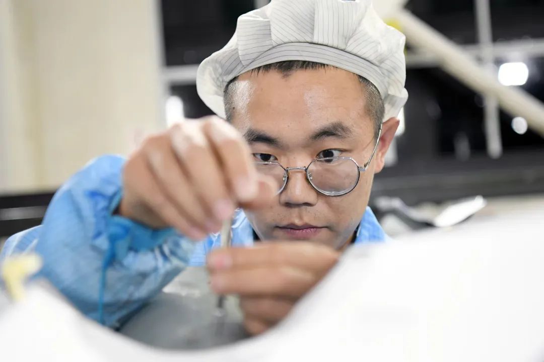 “我們兩個繼續組裝,你對裝好的再檢測一遍后提交檢驗。”“晚走一點,把材料烘好,明天白班直接上手干。”他們邊吃邊討論著工作安排。“干!”其中一名生產人員喊了一聲,休息加上用餐時間不到15分鐘的他們,一起起身朝工位走去。